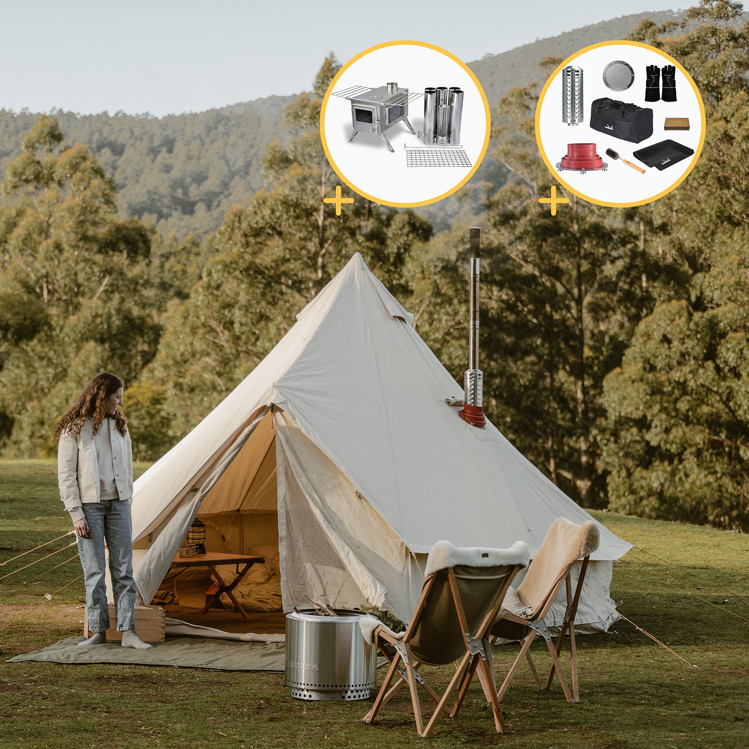 - Configuração Fácil: As tendas Bell são relativamente fáceis de montar e proporcionam grande conforto em climas frios quando combinadas com um fogão a lenha.