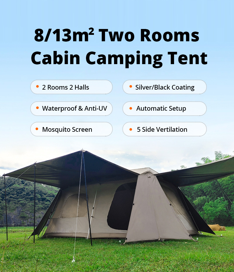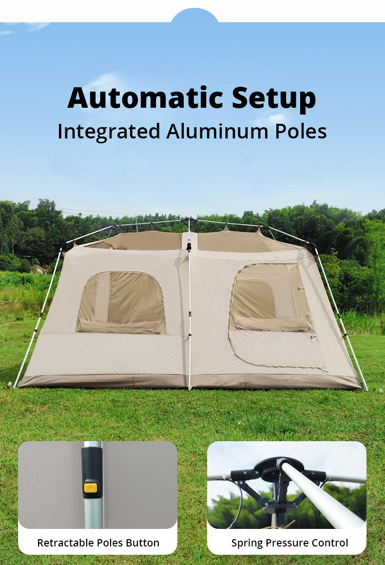 Iluminação LED embutida: A tenda familiar possui luzes LED integradas aos postes do teto. Com postes pré-fixados que travam facilmente no lugar, a tenda pode ser montada em apenas 2-5 minutos.