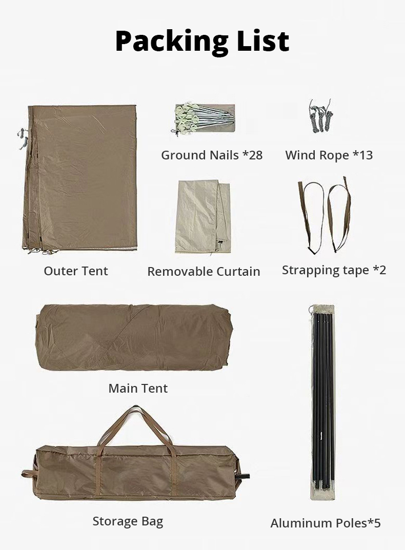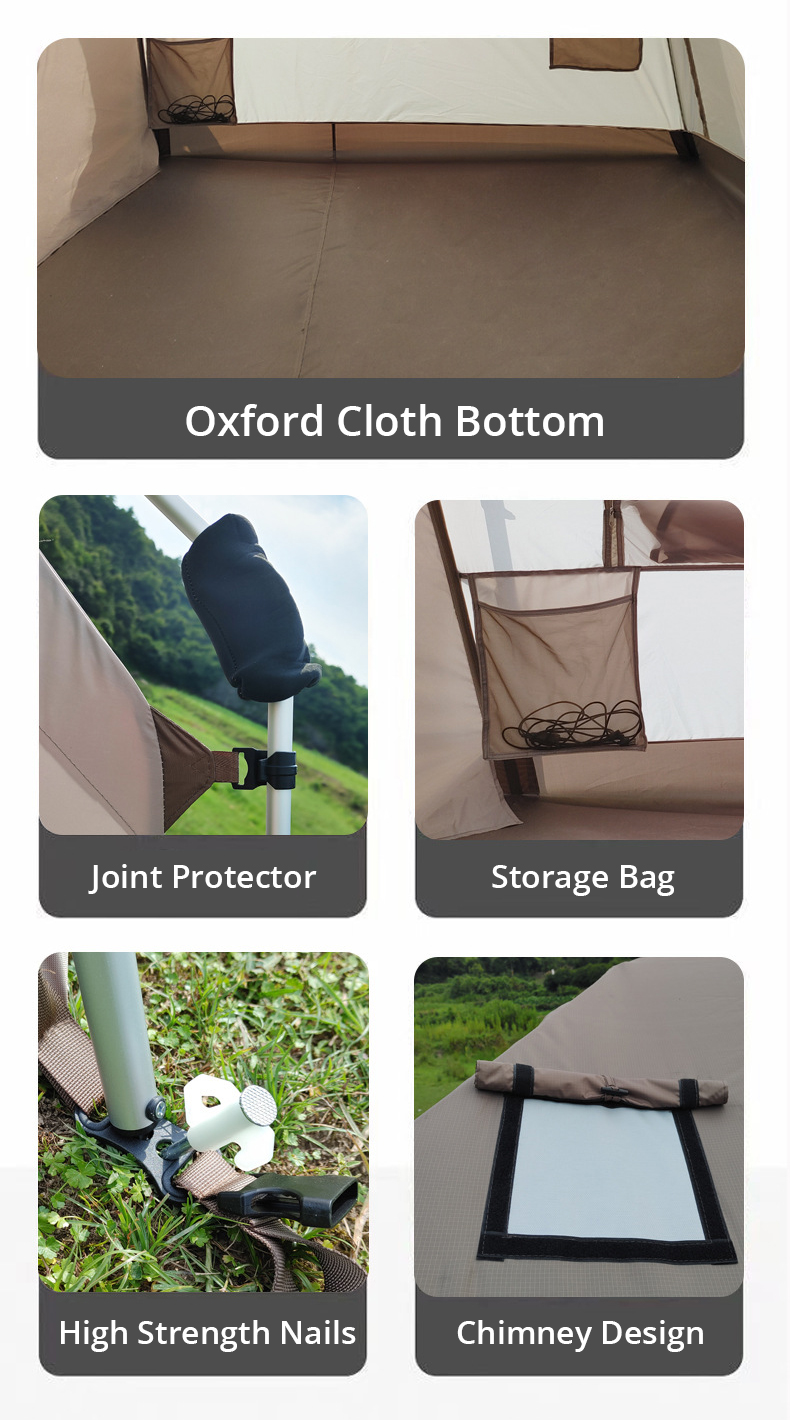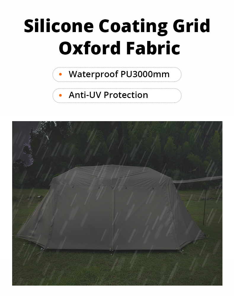 Proteção UV: A tenda tipi adulta é forrada com um revestimento prateado no verso, que tem um efeito perolado que reflete e dispersa os raios UV. O tecido é misturado com materiais absorventes de UV, fornecendo uma classificação de proteção UPF50+.