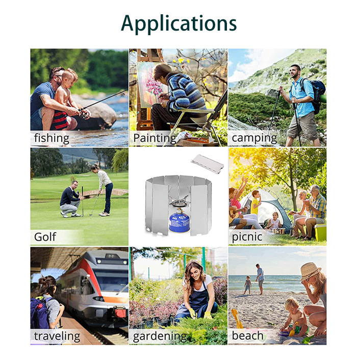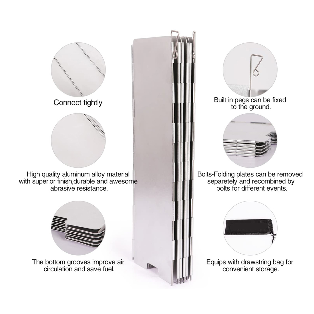 Pára-brisa de fogão de acampamento de alumínio de 10 placas com bolsa de transporte