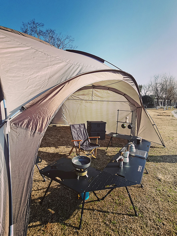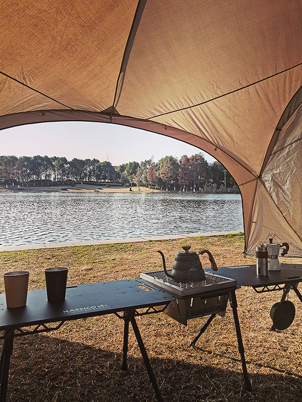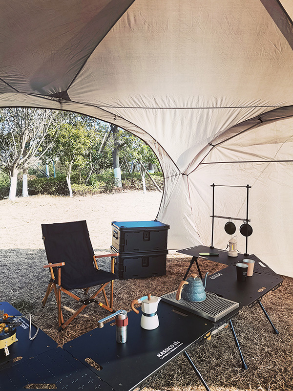 【Altura ajustável】O suporte científico em formato de X desta mesa de acampamento permite ajustar seu comprimento para se adaptar a qualquer terreno. Isso permite que ela suporte até 35 kg de peso de forma estável.