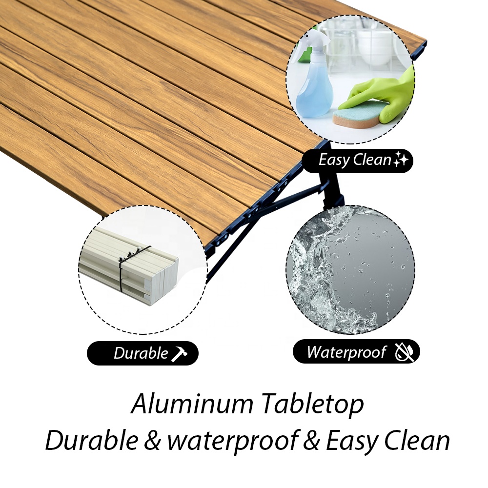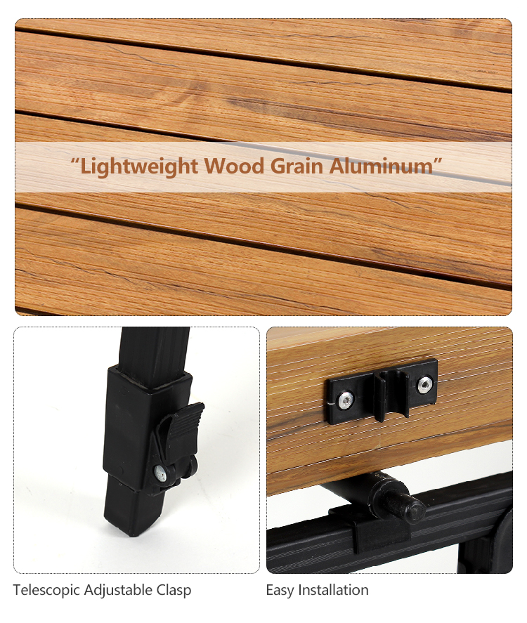 | Tampo da mesa: | Alumínio com padrão de madeira |
