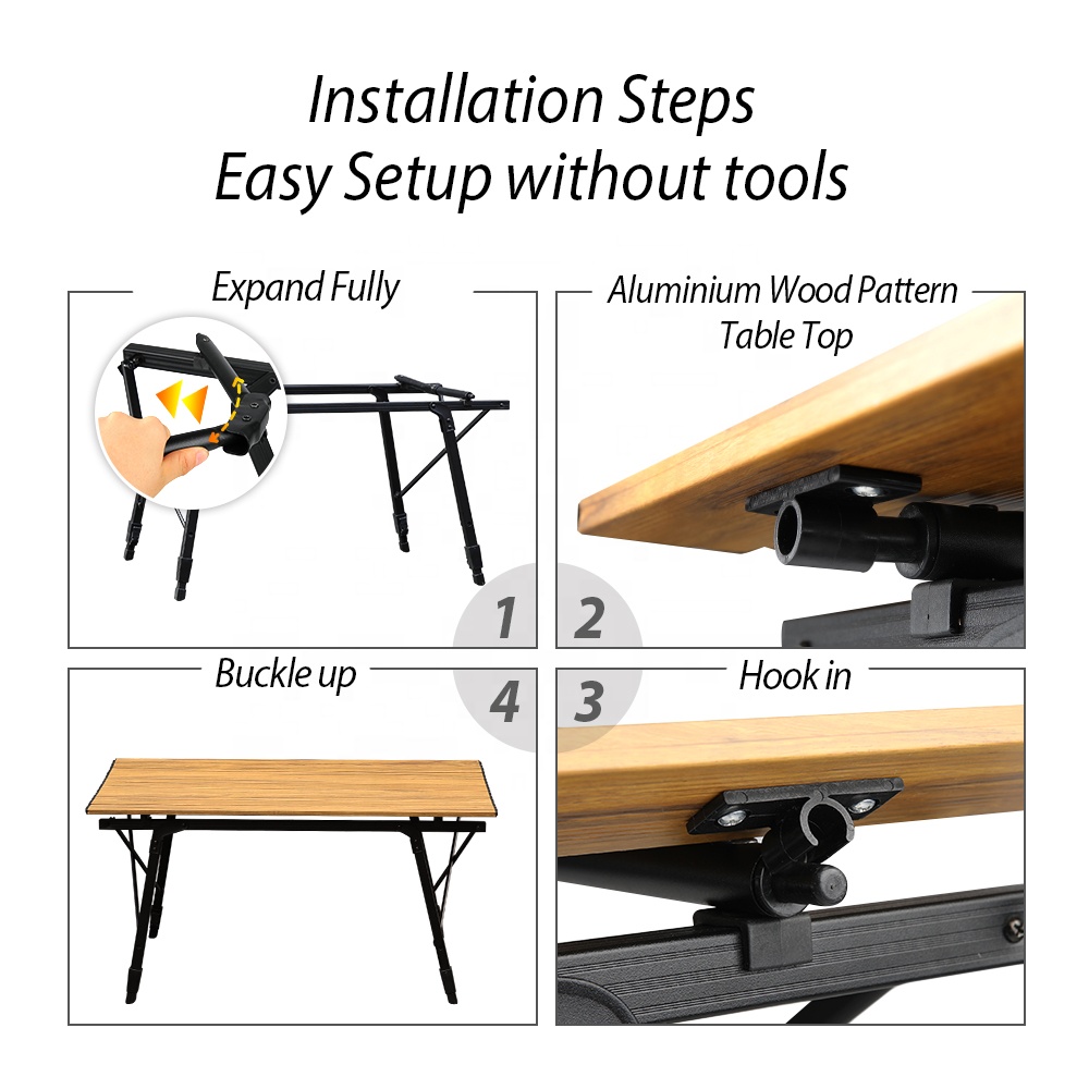 | Nome do produto: | KASSICO mesa de acampamento dobrável de alumínio padrão de madeira ao ar livre KASSICO |
