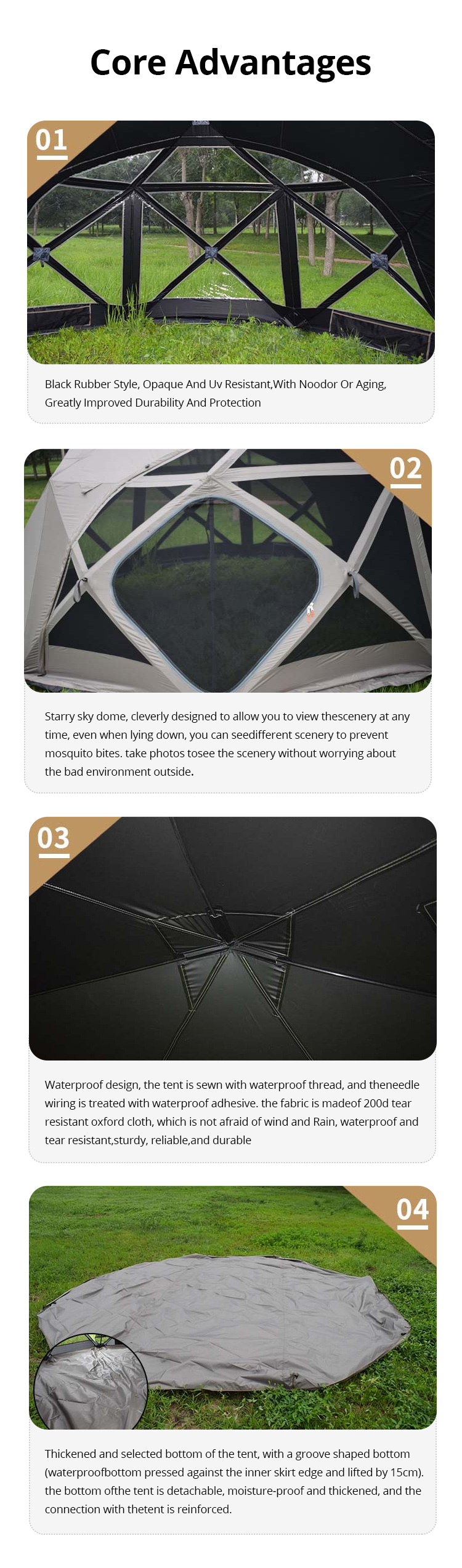 Tenda glamping automática pop-up com cúpula para camping, áreas de camping e hotéis