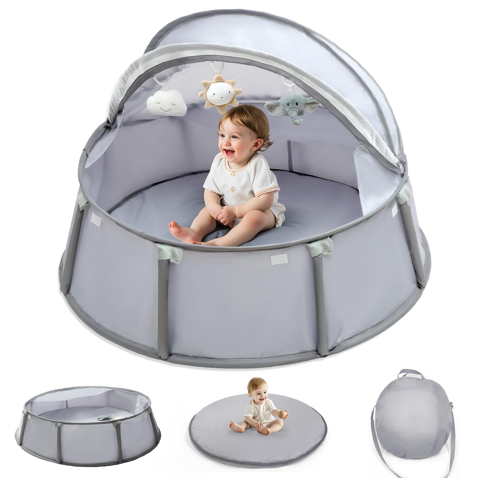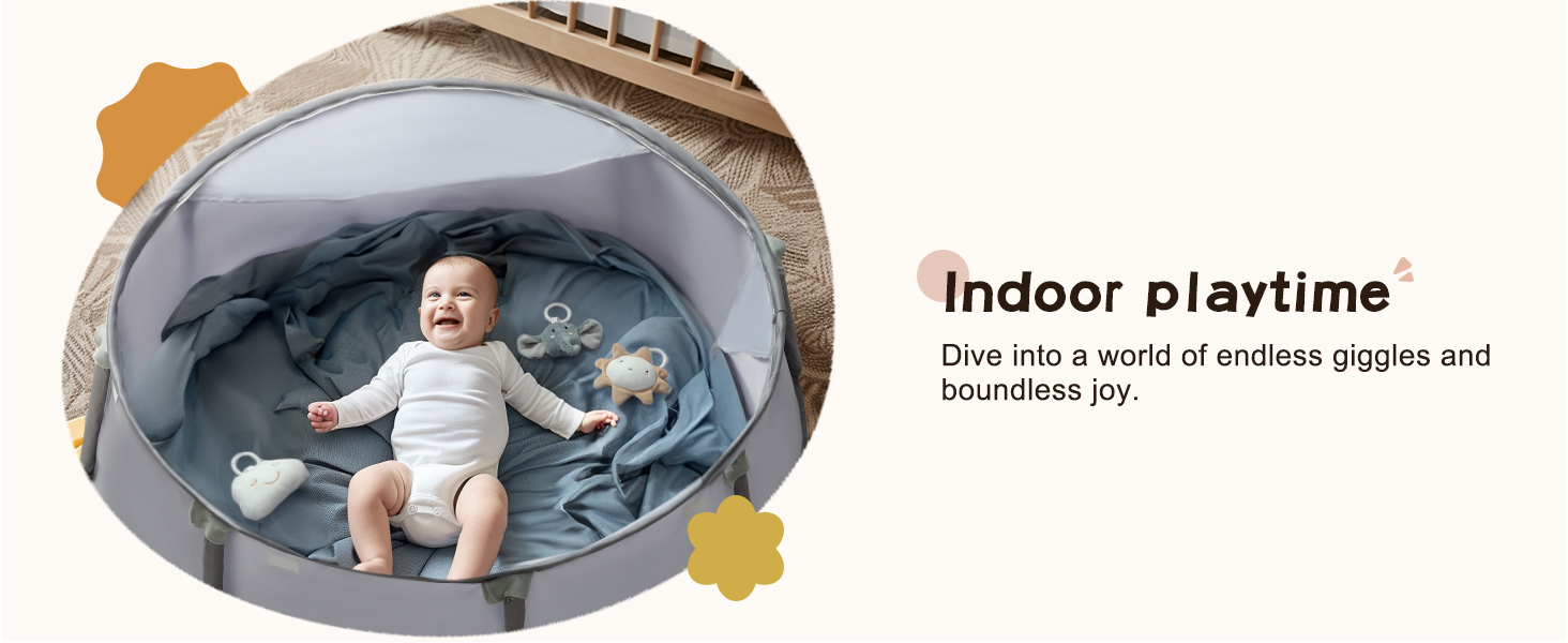 Uso interno e externo: Equipado com uma cobertura que fornece proteção solar FPS 20 e ajuda a manter os insetos longe, tornando-o ideal para ambientes internos e externos.