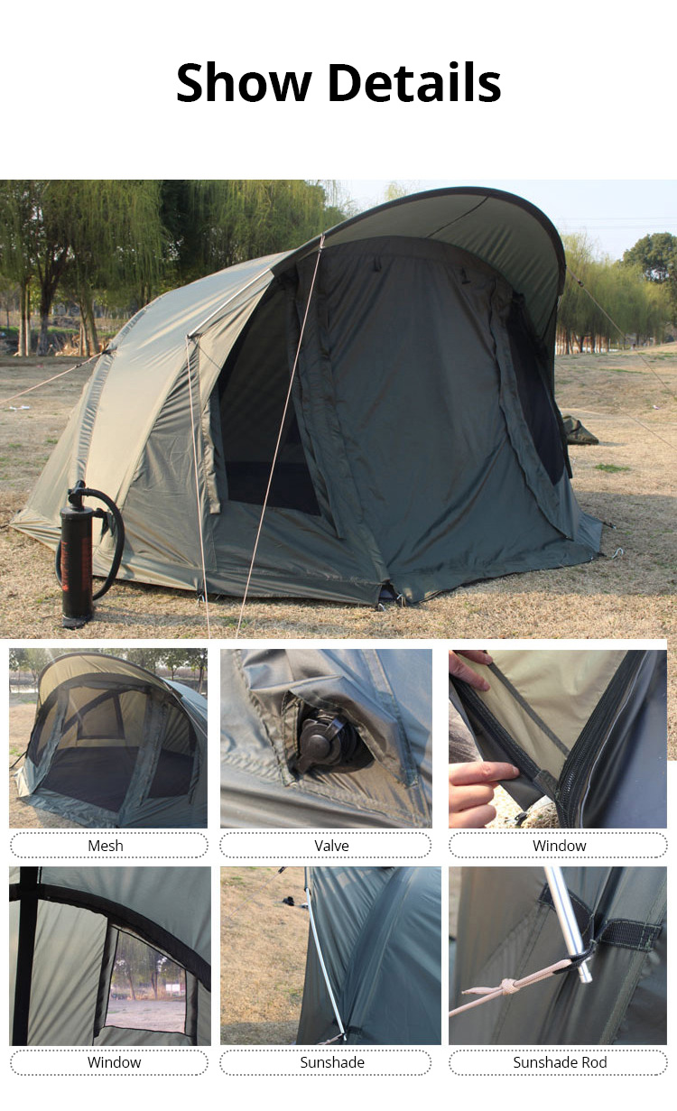 Tenda de acampamento e pesca camuflada com feixe de ar de poliuretano inflável