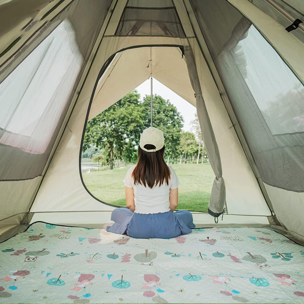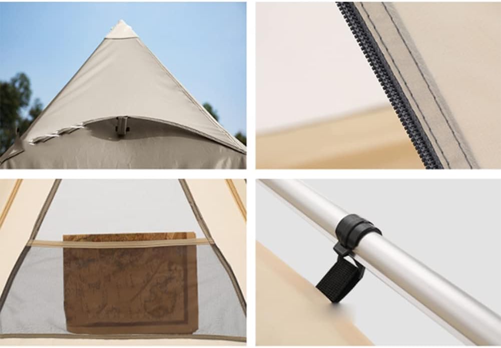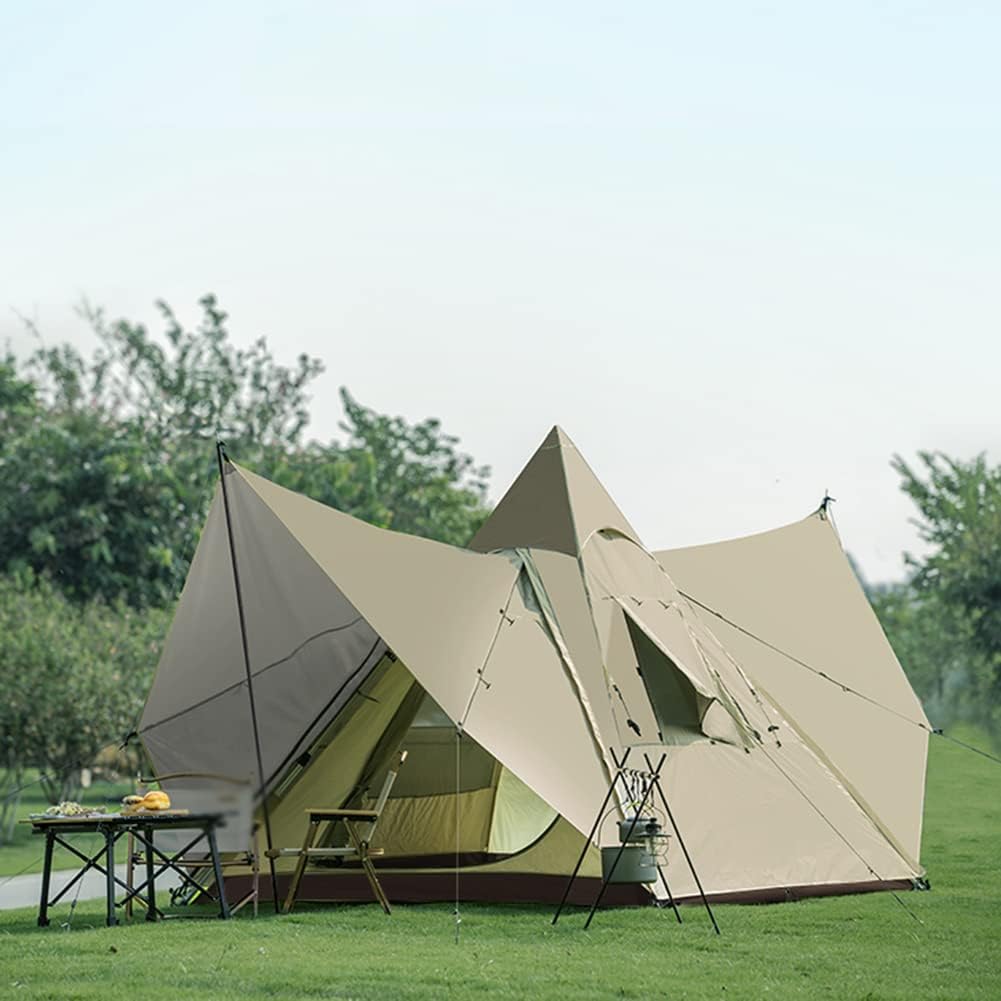 CAPACIDADE MÁXIMA: Com uma dimensão de 280*240*210CM/300*240*210CM, acomoda 3-4 adultos em pé na barraca sem bater no teto. O formato de tipi fornece altura generosa, permitindo que você entre e saia sem se sentir restrito.