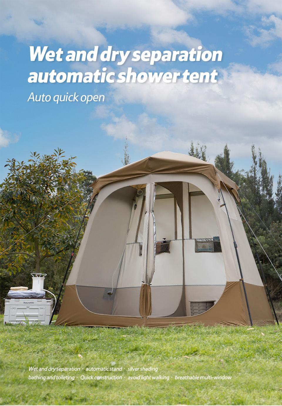 Acampamento ao ar livre Banheiro Vestiário Chuveiro Banheiro Tenda Separação Seca Molhada Tenda de Chuveiro Automática