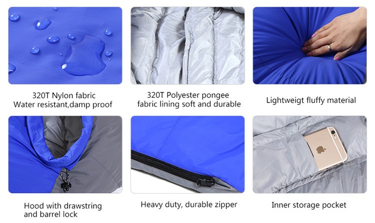 Saco de dormir quente de penas de pato para acampamento no inverno
