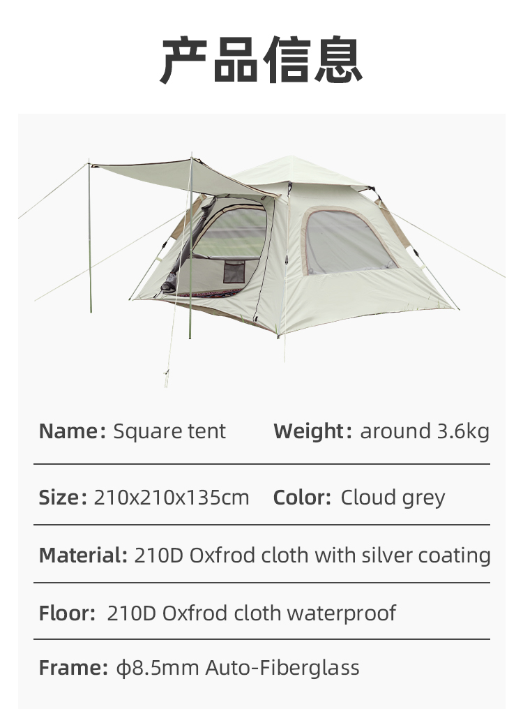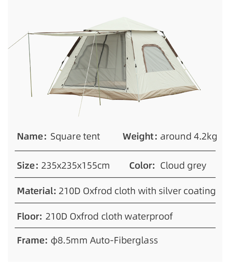 Tamanho: 235 * 235 * 155 cm (tamanho para 5 a 6 pessoas)