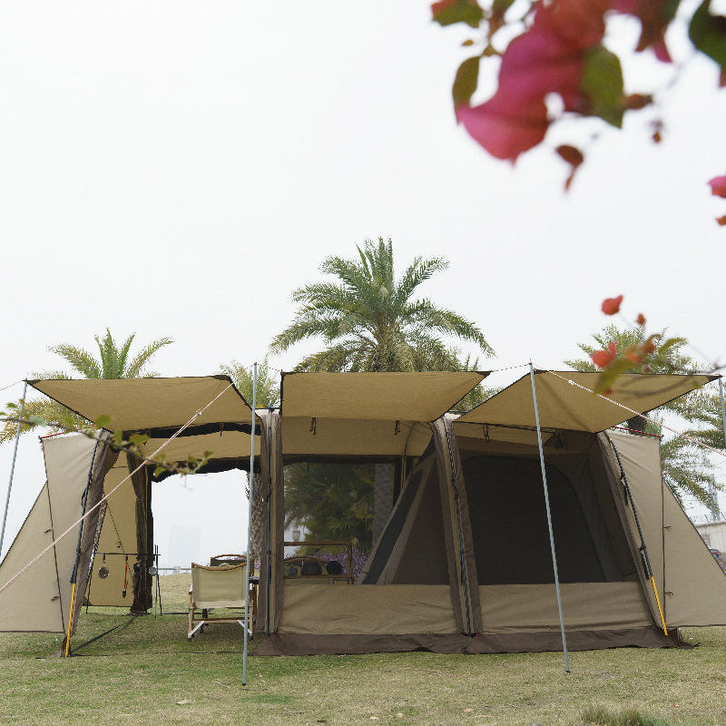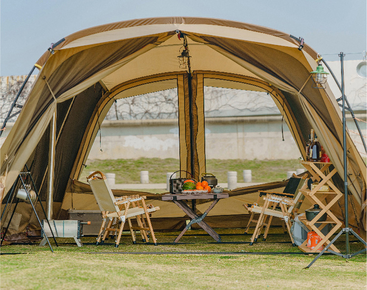 Tenda de túnel de glamping de luxo de camada dupla - para acampamento em família, piquenique, festa