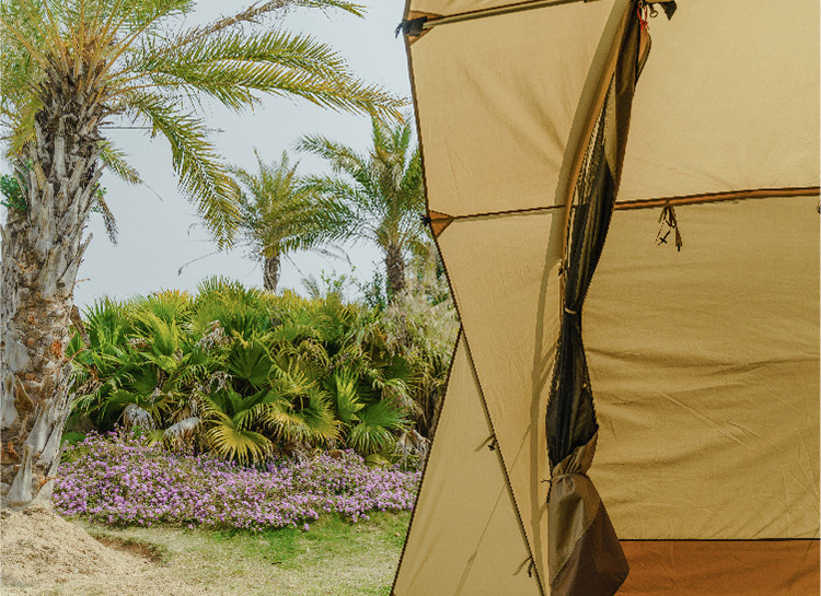 A barraca pode ser usada como guarda-sol, gazebo, toldo, etc. Você pode aproveitar o sol durante o dia e observar as estrelas à noite, proporcionando uma viagem romântica.
