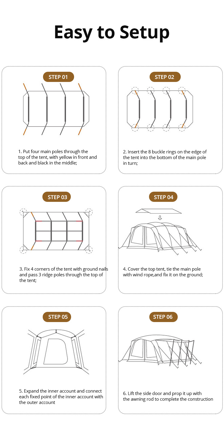 Esta barraca de túnel fácil de montar é para famílias ocupadas que não querem perder muito tempo se esforçando para montar e desmontar.
