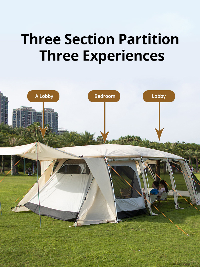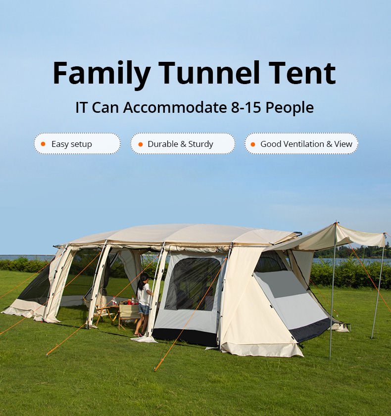 Tendas de acampamento para famílias de 8 a 15 pessoas - 2 quartos e 1 vestíbulo