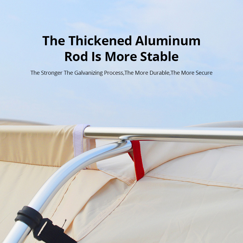 À prova d'água e de vento: A barraca é feita de tecido de poliéster 190T de alta qualidade. A barraca de camping à prova d'água possui 3000 mm de poliuretano à prova d'água, podendo ser usada em dias chuvosos ou com neve. Os postes de alumínio de alta qualidade garantem que a barraca de camping à prova d'água seja muito mais resistente do que as barracas dobráveis, o que torna sua viagem de acampamento mais agradável e confortável.