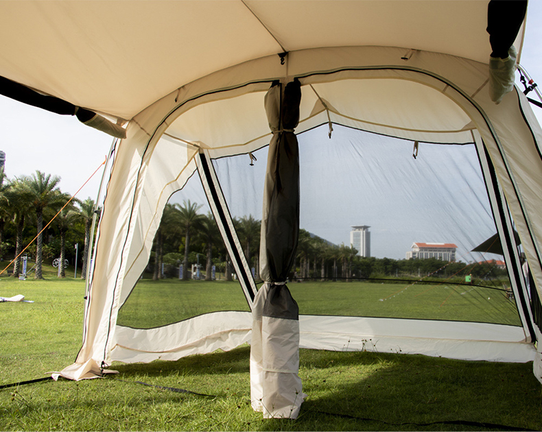Ventilação: Esta barraca de túnel com entradas e tendas internas com tecido respirável e chão costurado e mosquiteiro para conforto ao dormir sem insetos e correntes de ar.