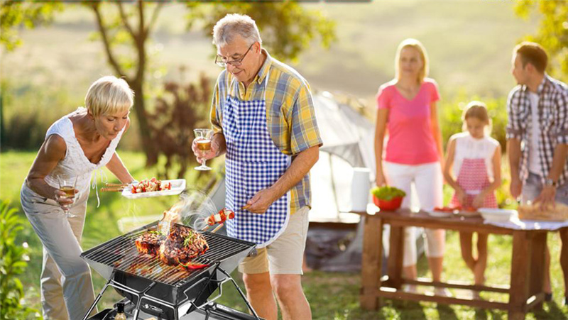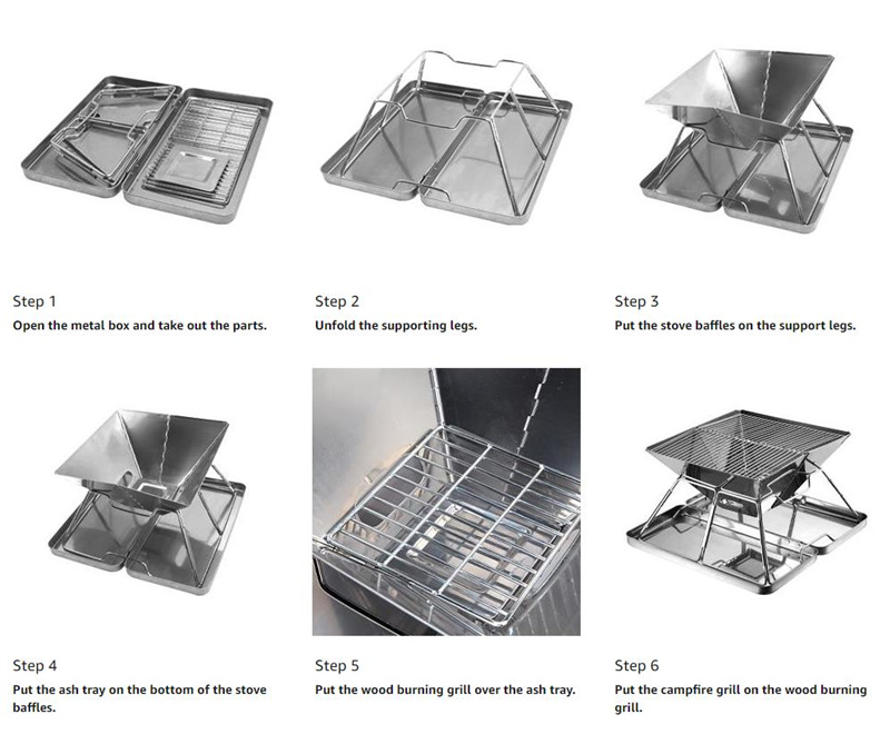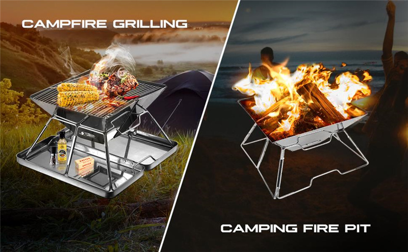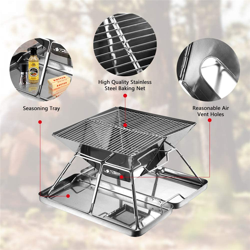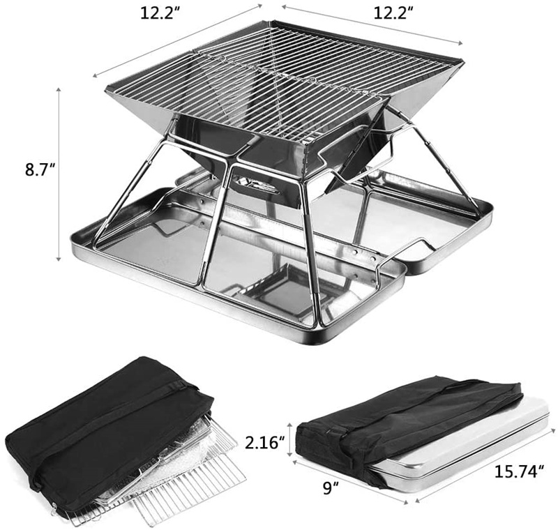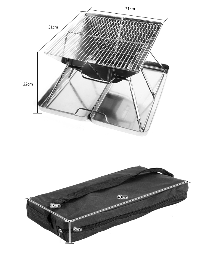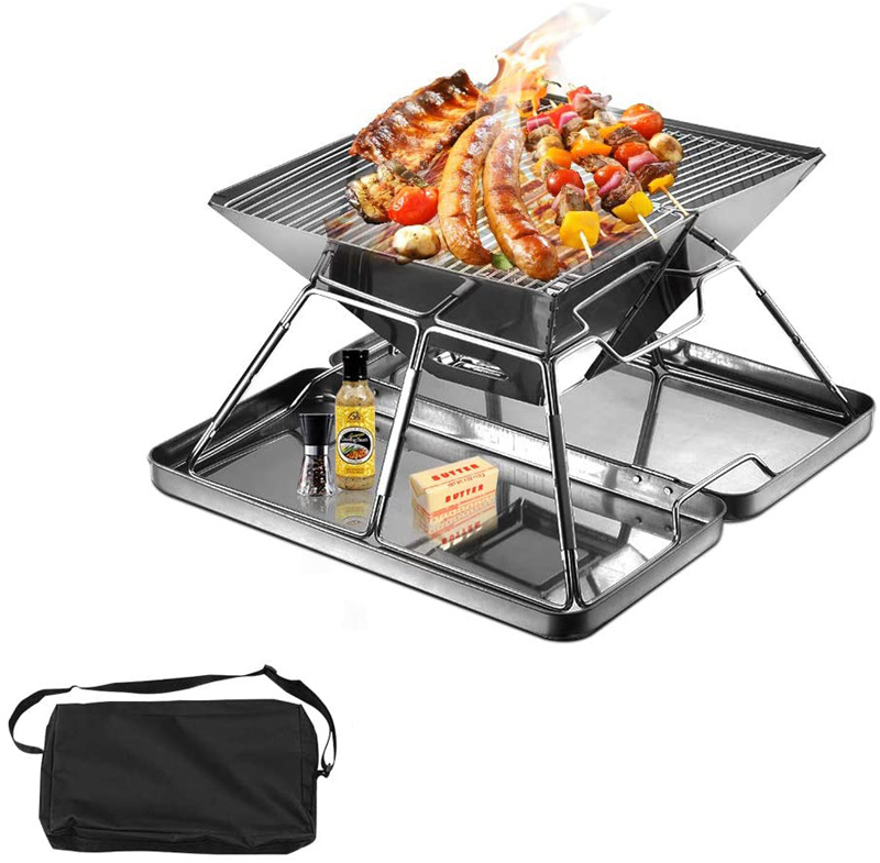 Churrasqueira dobrável a carvão e madeira de aço inoxidável | Churrasqueira para área externa