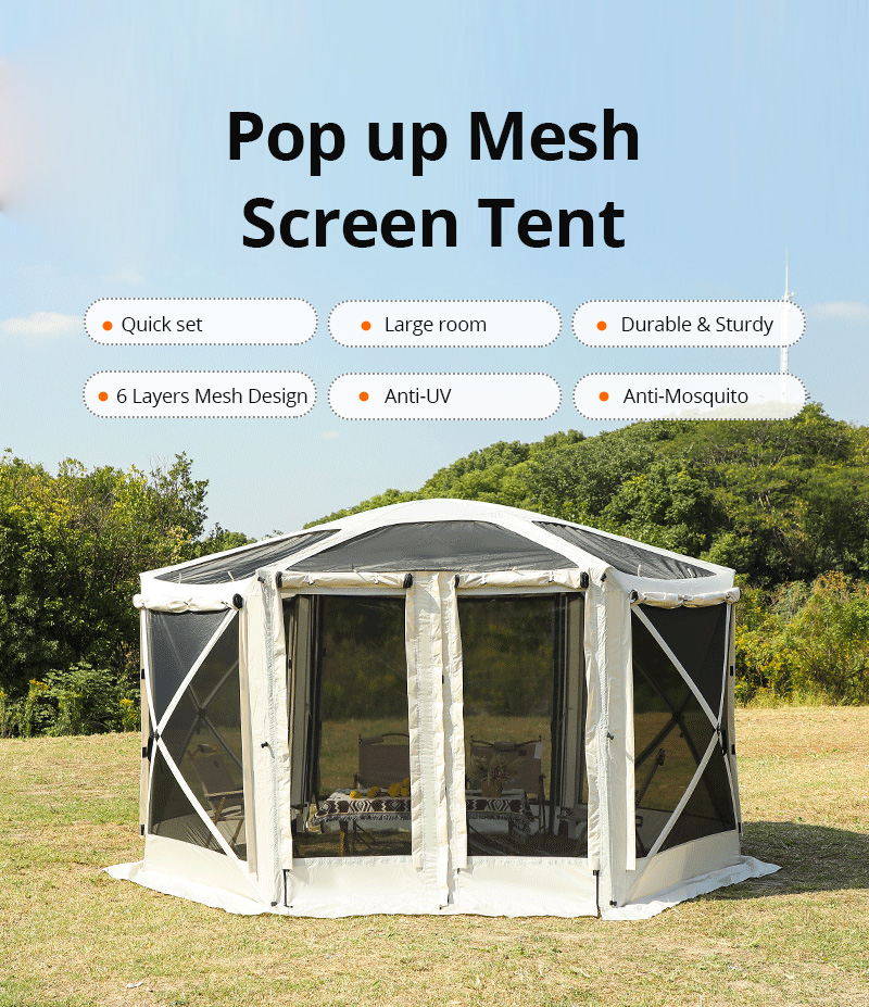 Tenda de acampamento tipo gazebo com tela hexagonal - repelente de mosquitos, retrátil