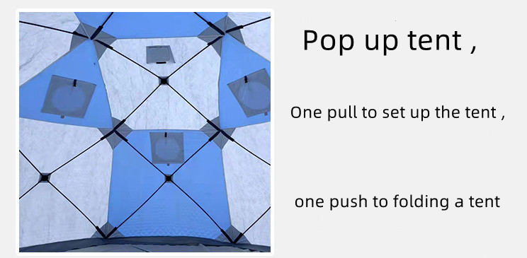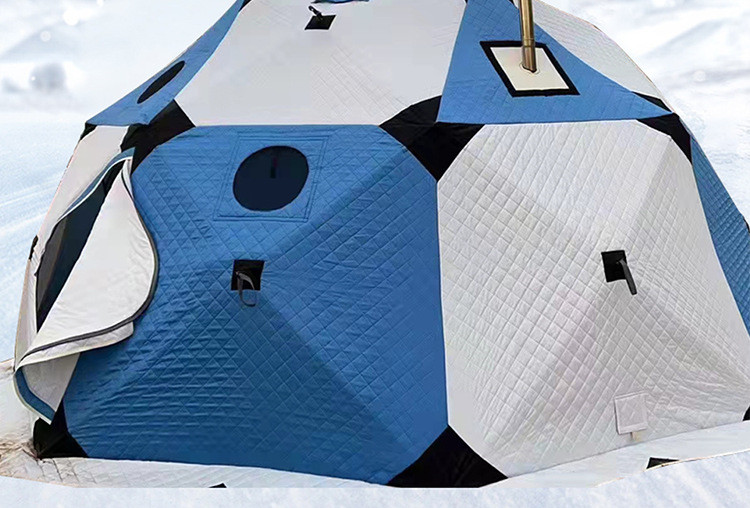 【Tecido Premium】Confeccionada em tecido Oxford resistente que envolve toda a estrutura, esta barraca garante uma experiência à prova d'água. Seu design, resistente a temperaturas de até -22°F, aumenta ainda mais o seu prazer ao ar livre. A barraca possui quatro janelas cobertas, todas removíveis para maior versatilidade.