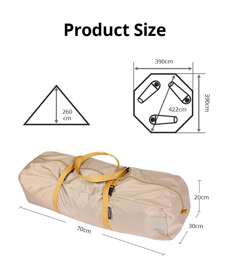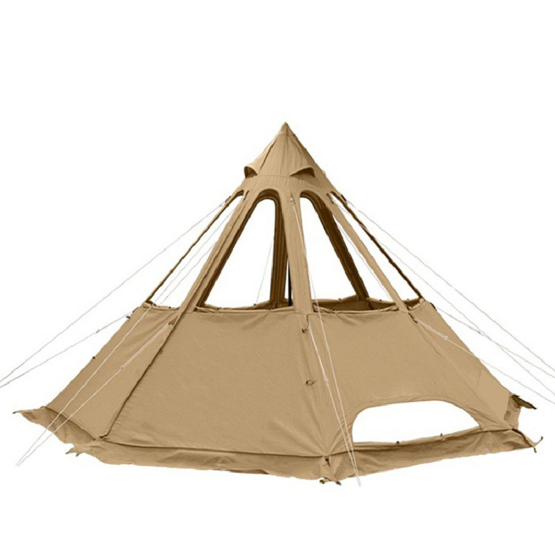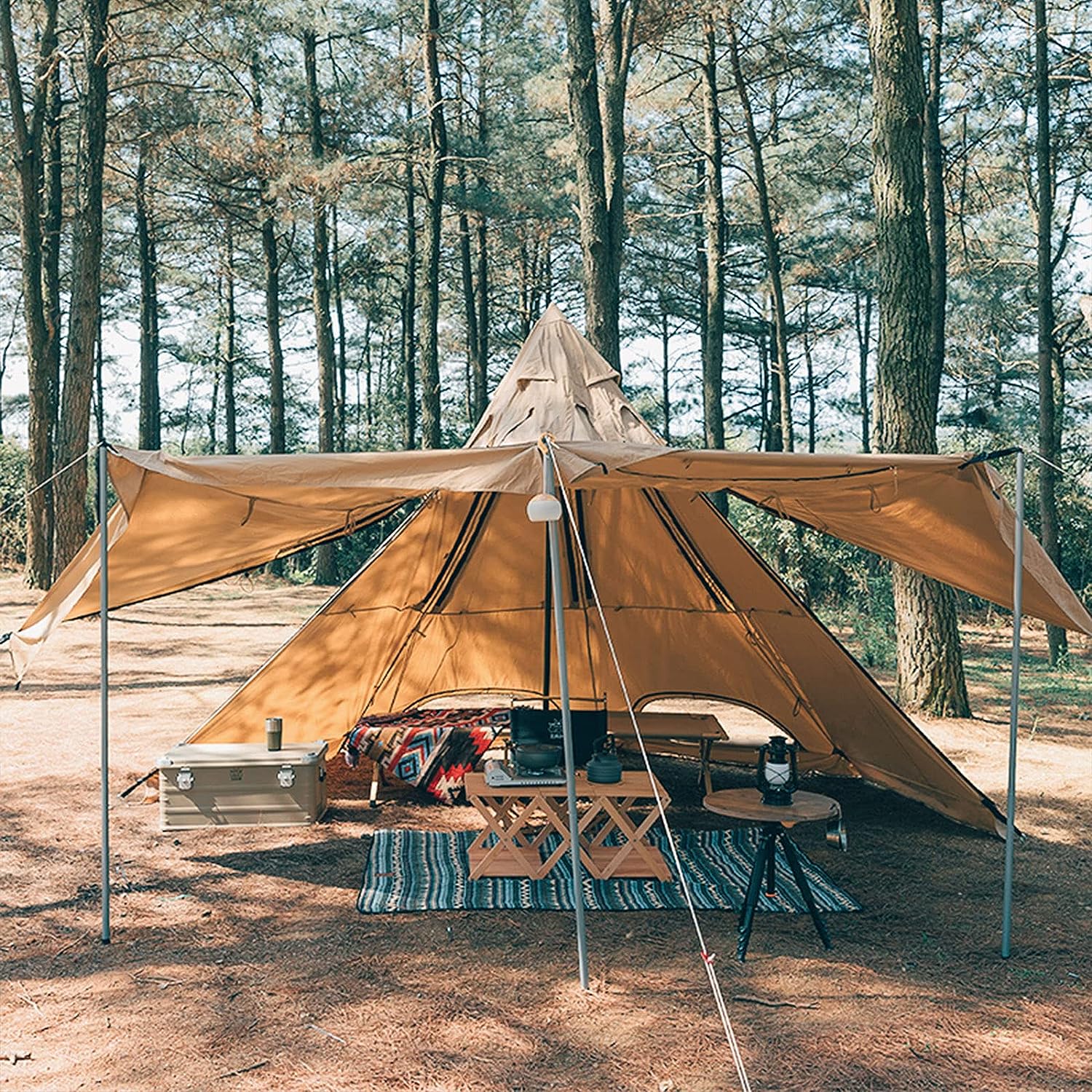 CAPACIDADE MÁXIMA: Com dimensões de 390 x 390 x 260 cm, esta tenda tipi acomoda confortavelmente de 5 a 8 adultos em pé, sem a preocupação de bater no teto. O formato tipi proporciona uma altura generosa, permitindo que você entre e saia sem esforço, sem se sentir limitado.