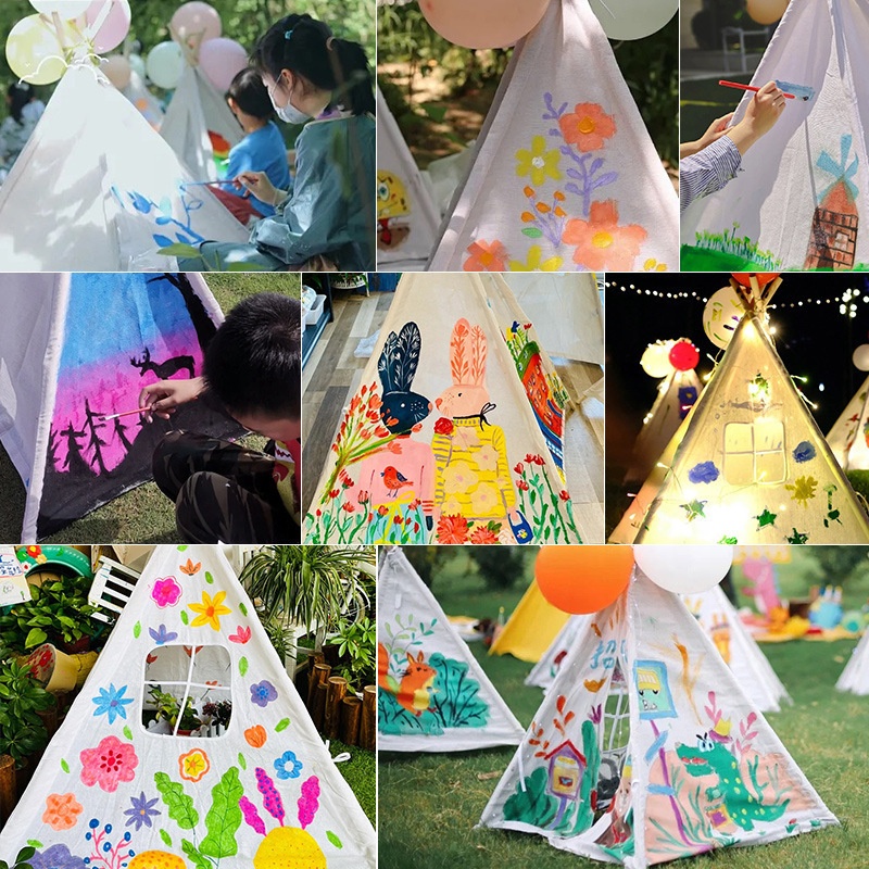 Tenda de brincar tipo tipi de lona faça você mesmo para crianças