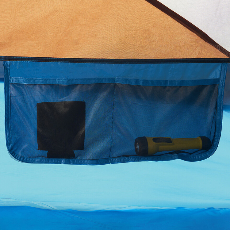 Piso da barraca: Feito com poliéster 68D durável, garantindo uma base confortável e resistente.
