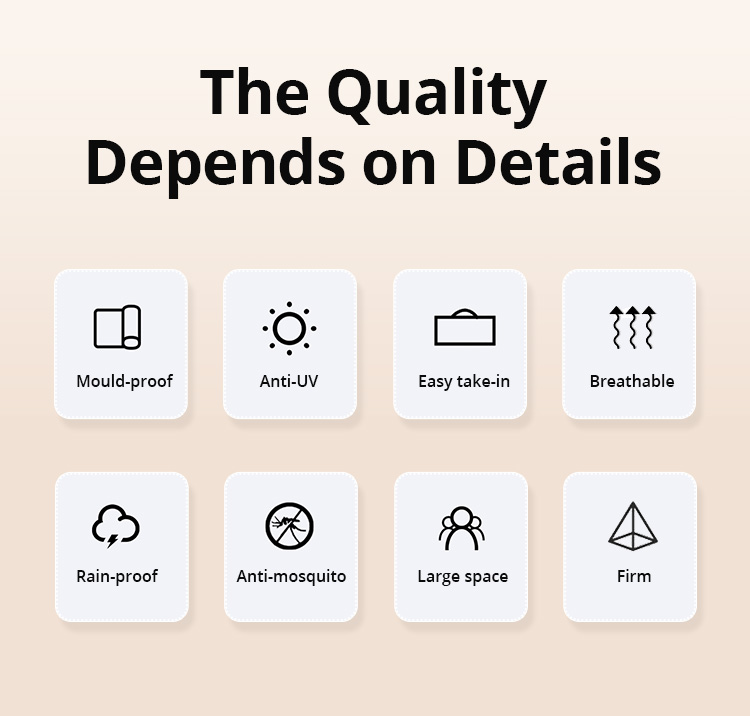 TENDAS IMPERMEÁVEIS E ANTI-UV: A barraca à prova d'água é feita de lona de algodão 210g ou tecido Oxford 900D + revestimento à prova d'água de 3000mm, que pode ser usada como proteção solar UV na praia, bem como barraca de acampamento pop-up à prova d'água para descanso no quintal, acampamento casual, caminhadas, festivais ao ar livre e outras atividades.