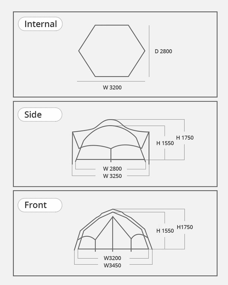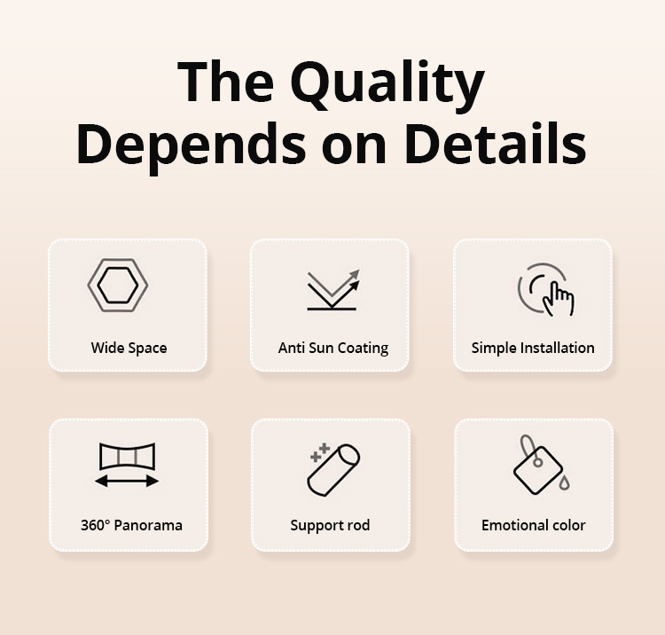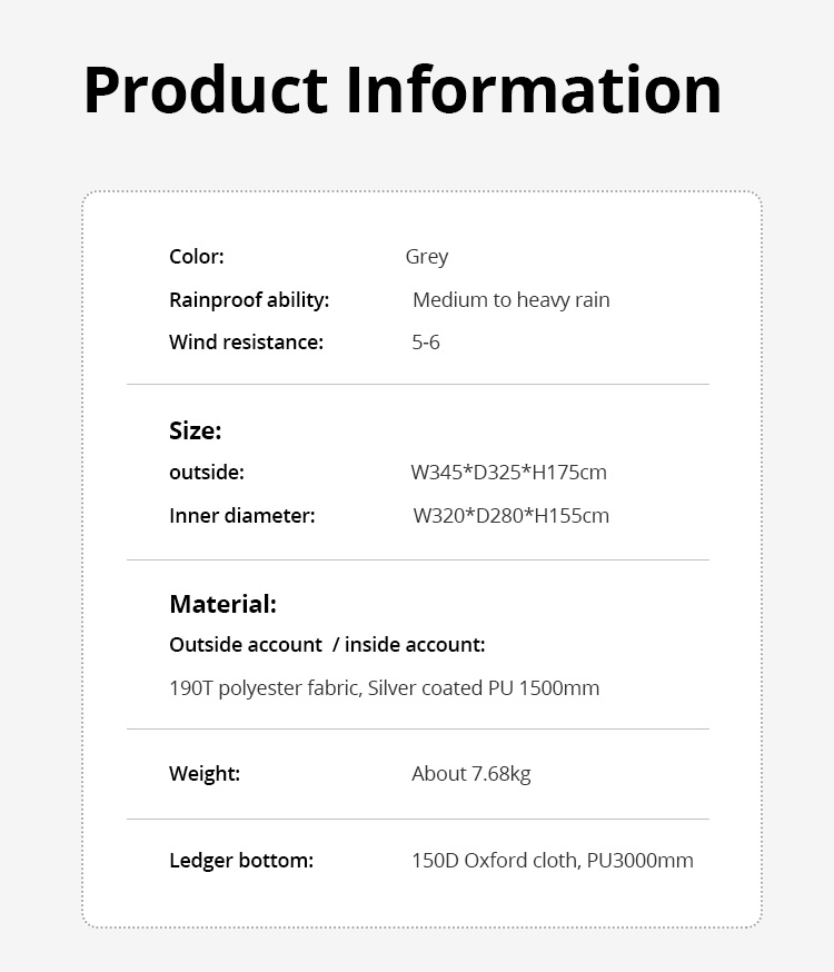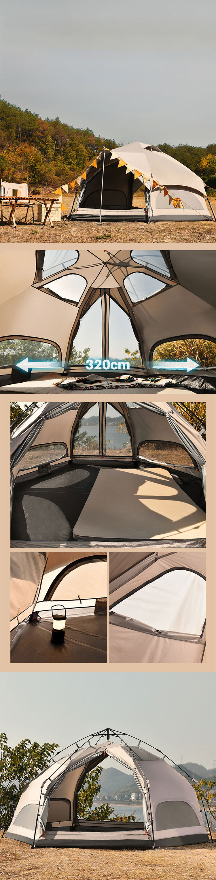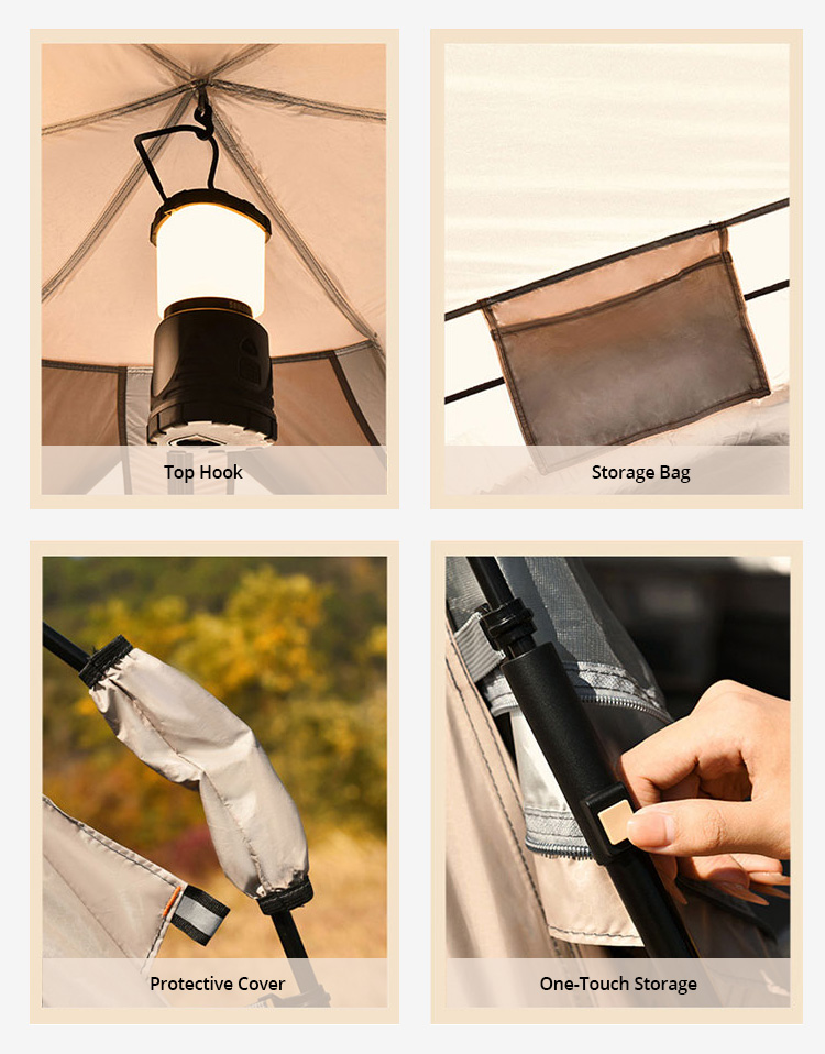 Materiais impermeáveis e construção premium: Graças ao material espesso do piso, você pode relaxar confortavelmente mesmo com mau tempo. Remova a tenda externa para apreciar a vista e melhorar a ventilação.