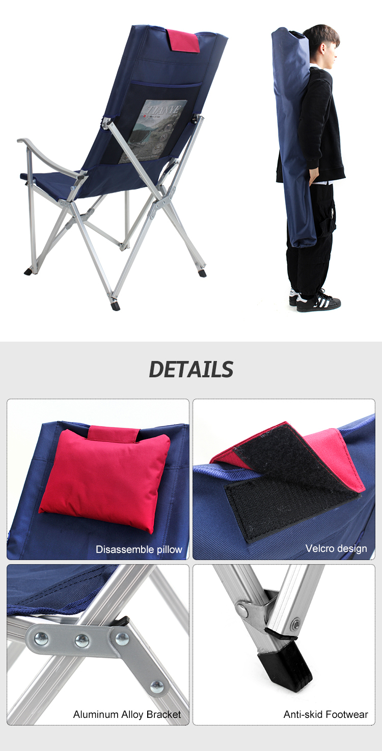 Cadeira de acampamento dobrável de alumínio para áreas externas com travesseiro