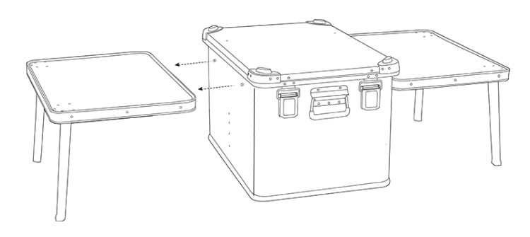 Caixa da série KASSICO K é uma caixa de cozinha móvel externa portátil toda em alumínio, que integra caixa de alumínio, mesa e painel dobrável, painel expandido, fogão, utensílios de cozinha, talheres e outros suprimentos, tudo em uma caixa, e pode ser usada para cozinhar ao ar livre e armazenar equipamentos de acampamento. A caixa de cozinha móvel é o complemento perfeito para o seu acampamento ao ar livre e a companheira de viagem ideal durante um piquenique, no barco ou no carro. Depois de ter esta caixa de cozinha móvel, esta cozinha portátil inclui tudo para preparar de forma rápida e fácil o seu pequeno-almoço, almoço ou jantar, onde quer que vá e o que quer que vá fazer.