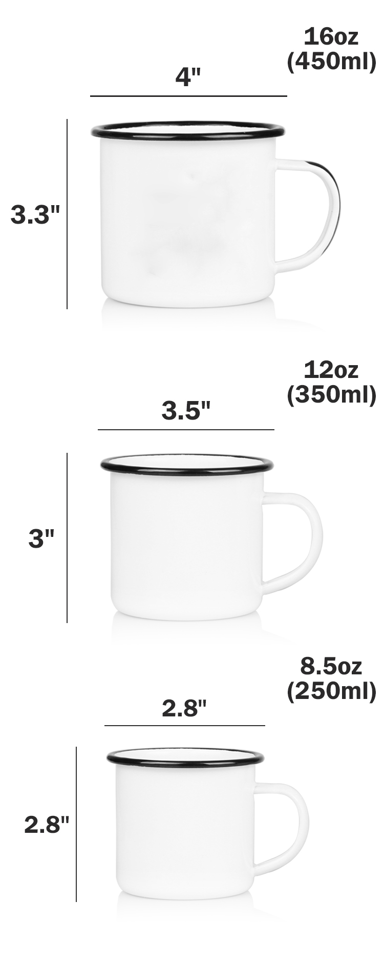 Capacidade | 8.5 onças / 12 onças / 16 onças |