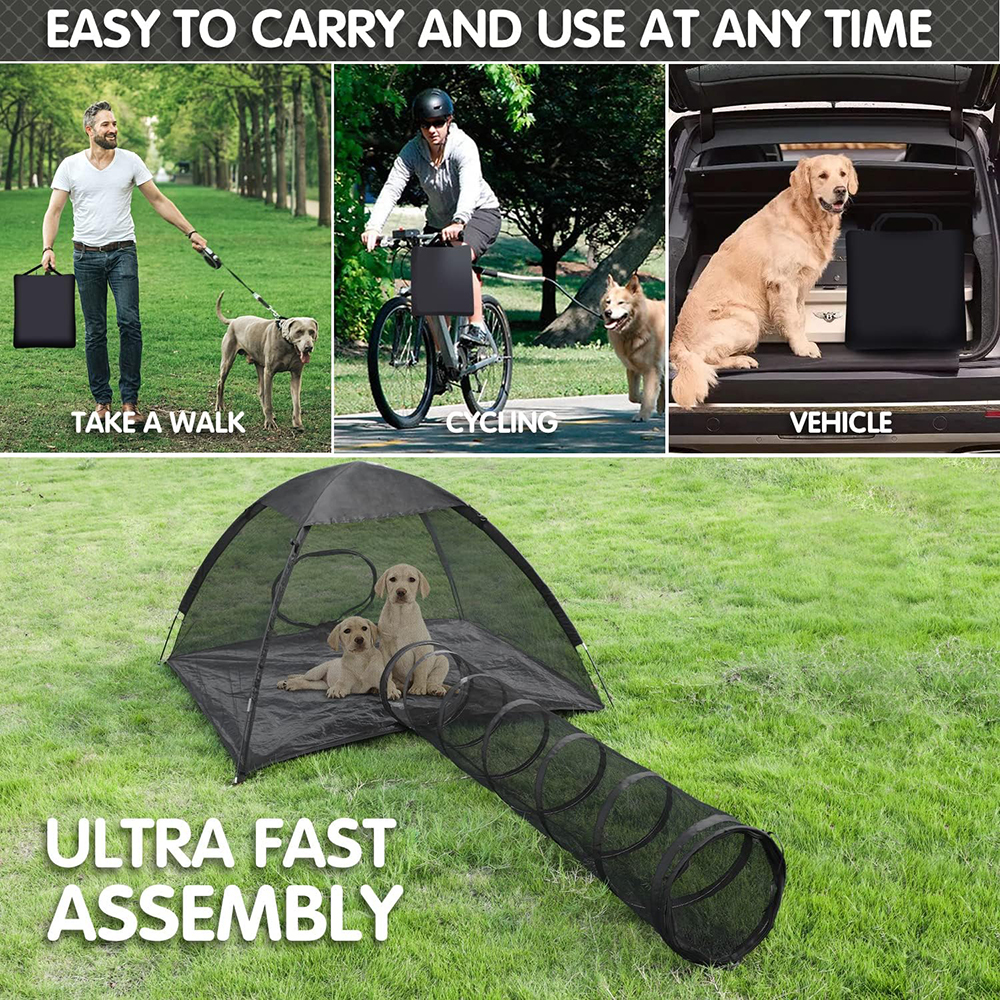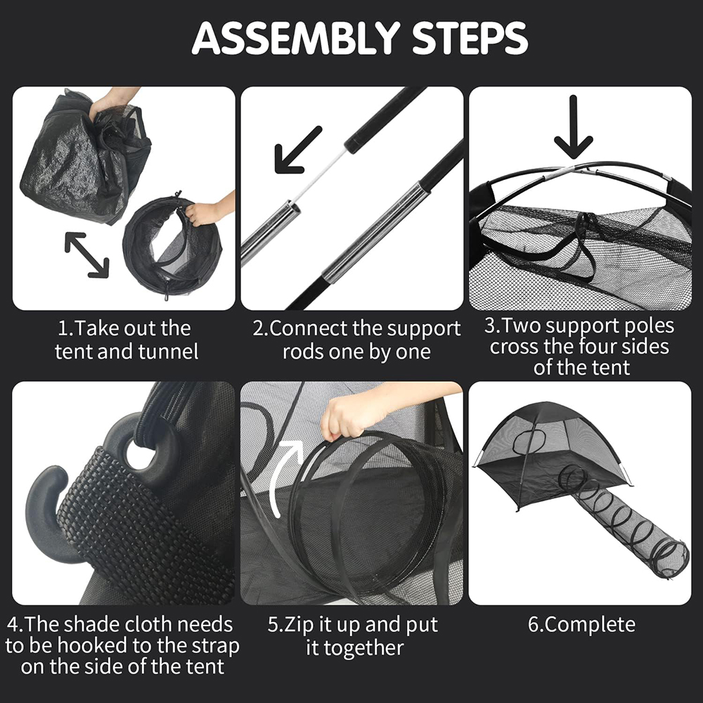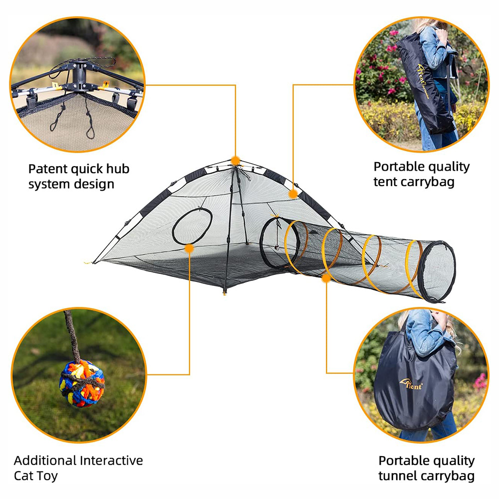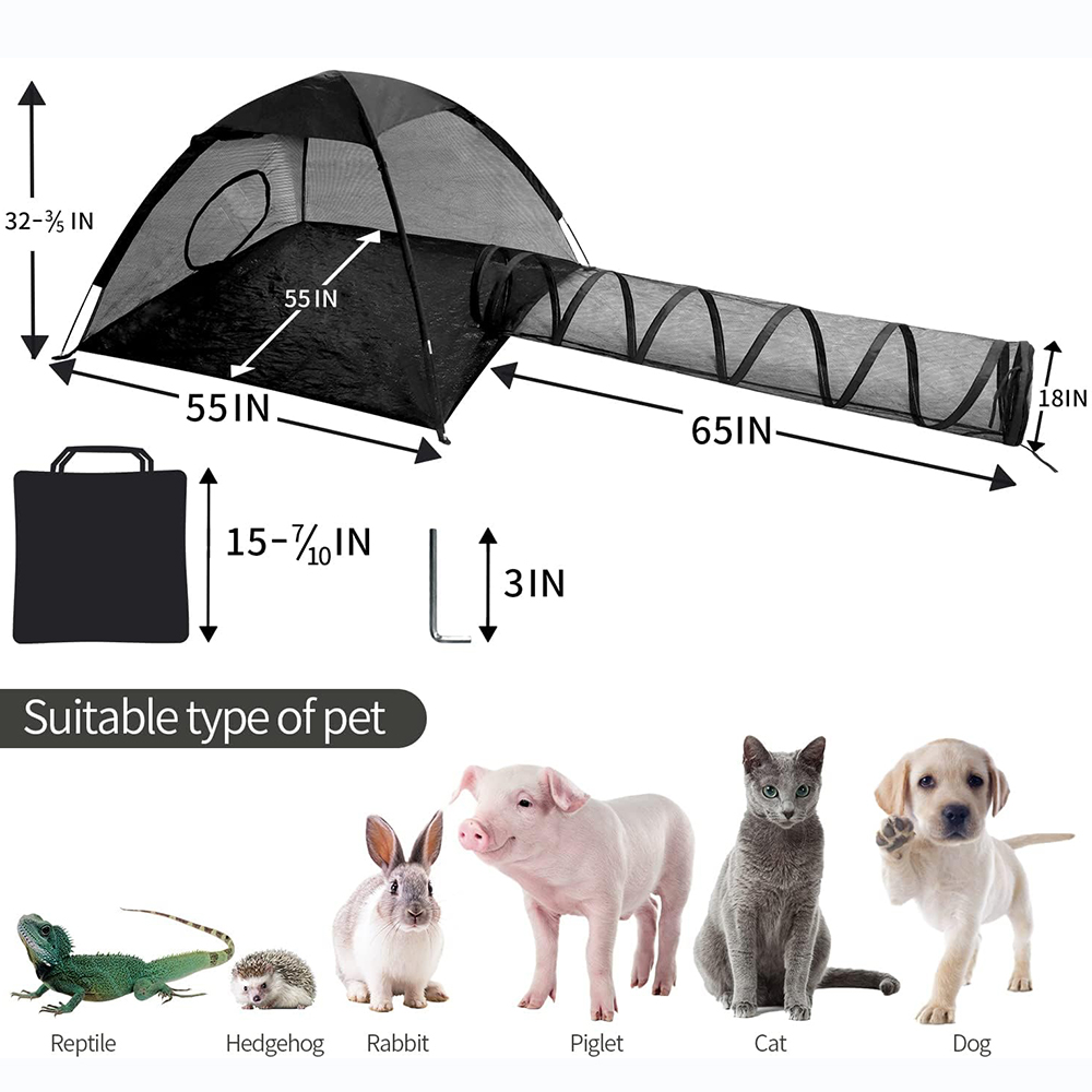 Aproveite o ar livre com segurança: A estrutura em tela proporciona uma lufada de ar fresco para seus animais de estimação. O túnel possui uma porta com zíper em uma das extremidades, permitindo fácil acesso e garantindo a segurança.