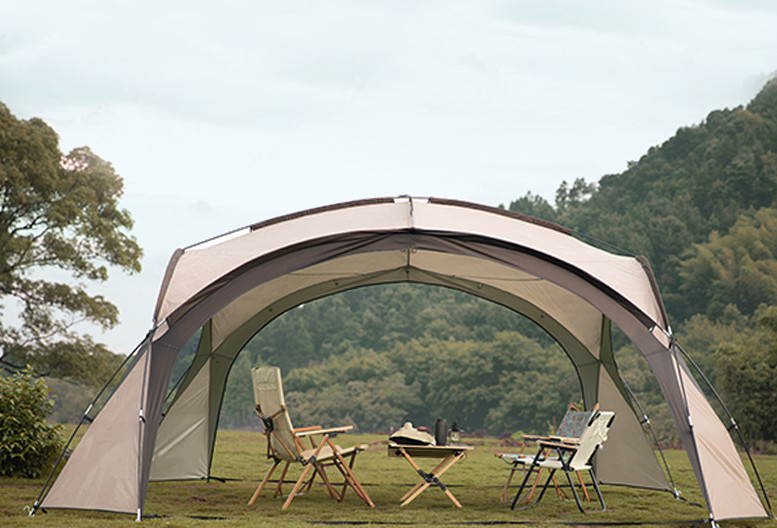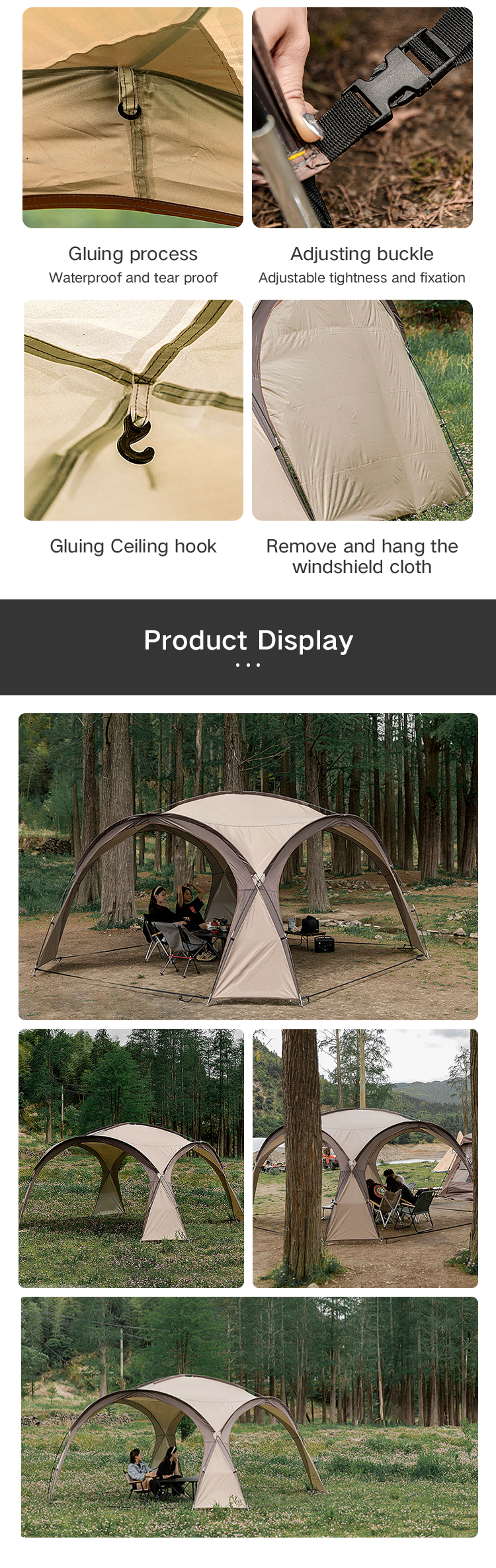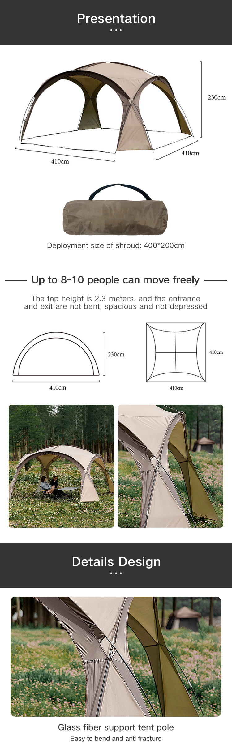 Cobertura espaçosa: Com dimensões de 420x420x230 cm, este abrigo em forma de cúpula oferece aproximadamente 17.6 metros quadrados de espaço habitável, acomodando confortavelmente de 8 a 10 pessoas.