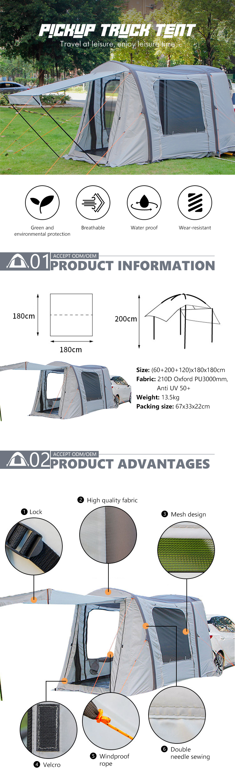 Recurso à prova d'água: Esta barraca de porta traseira de SUV é feita de tecido oxford 210D, com revestimento à prova d'água PU2000, à prova de chuva e resistente à água pode ser alcançada convenientemente. O fundo da barraca tem uma camada estanque para evitar infiltração de água da chuva.