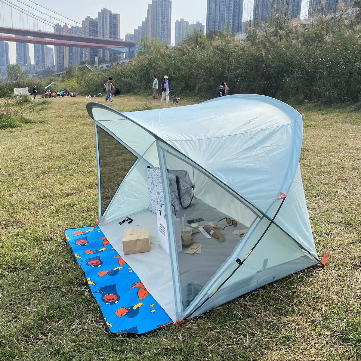 【Proteção FPS 50+, Ventilação 360°】Nossa barraca de praia retrátil é feita de tecido de poliéster 190T com tratamento de cola de prata. Isso faz com que o índice de proteção solar atinja até FPS 50+, o que pode bloquear eficazmente os raios ultravioleta. Ela é construída com um design semiaberto com 3 janelas de tela para maximizar o fluxo de ar. Isso permite que você se mantenha fresco e mantenha a areia da barraca de praia longe.
