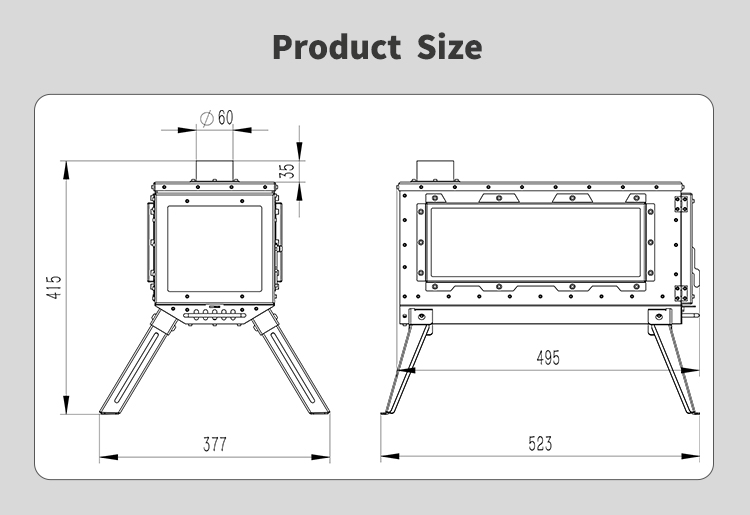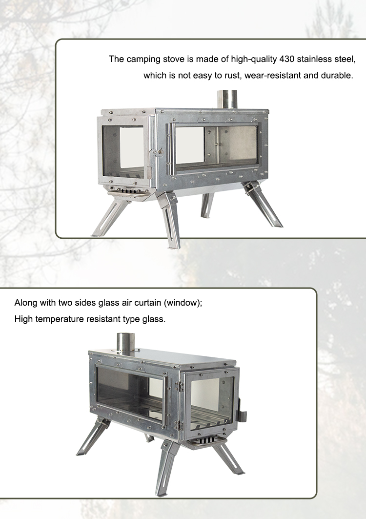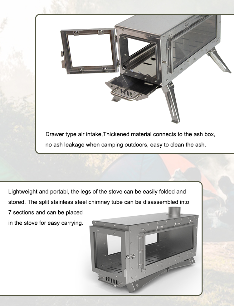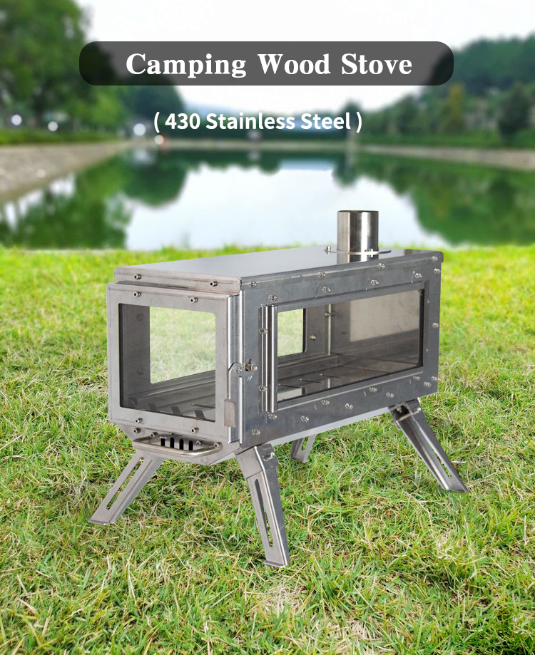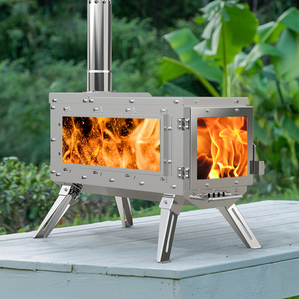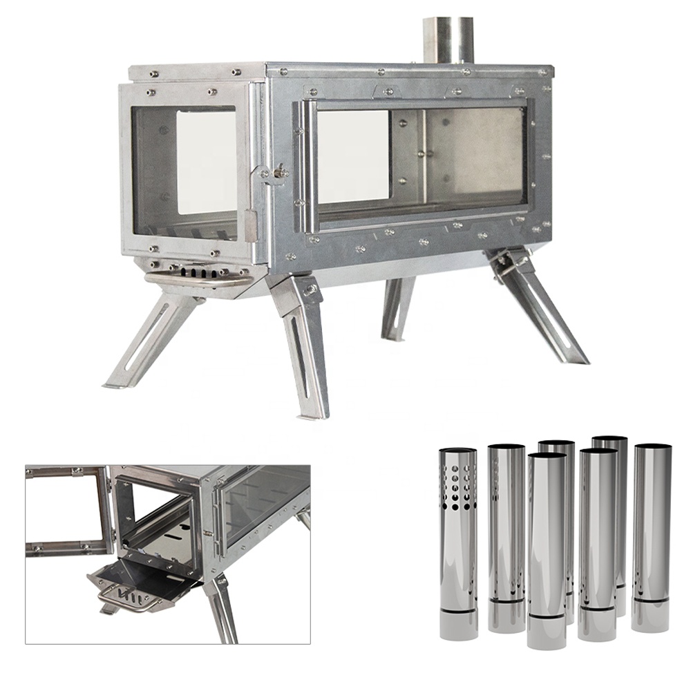 Fogão a lenha para barraca de acampamento de aço inoxidável com chaminé