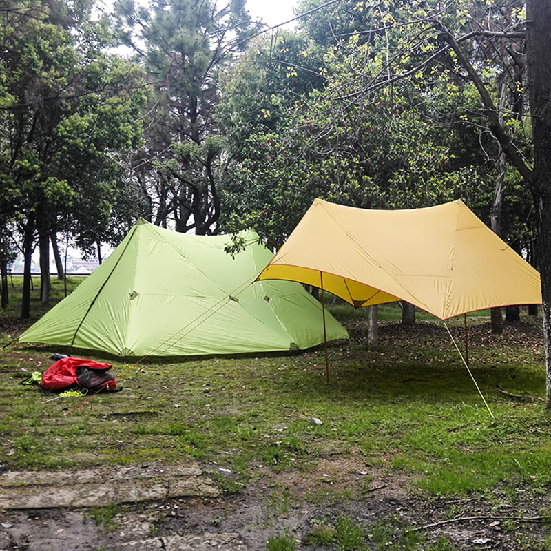 Tenda de caminhada ultraleve à prova de chuva para montanha com bastão de caminhada e lona protetora