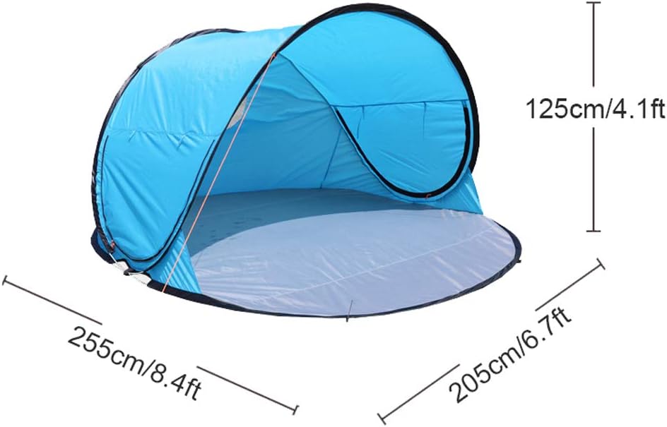 Espaço maior: Nossa barraca de praia retrátil mede 255 x 205 x 125 cm, acomodando confortavelmente de 4 a 6 pessoas em uma família. A barraca de praia retrátil vem em uma bolsa de transporte portátil para que você possa facilmente dobrá-la, guardá-la e levá-la para o jet ski! Esta é a melhor escolha para você!