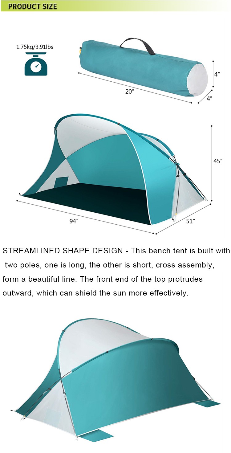 Aproveite o passeio perfeito: Esta barraca versátil é o seu abrigo de praia preferido e a sua companheira de piquenique. Também é ideal para pesca e diversas atividades ao ar livre. Além disso, você pode montá-la no seu quintal ou jardim para passar momentos de qualidade com seus filhos!