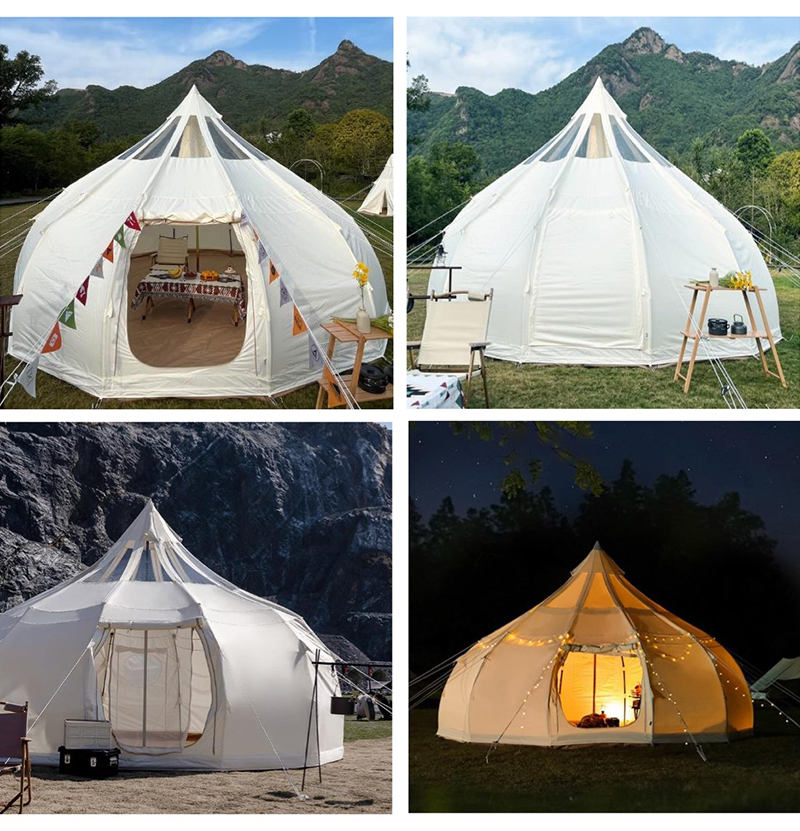 【Tenda ou cobertura】Este espaço pode acomodar de 10 a 12 pessoas em uma barraca. É ideal para reuniões familiares, festivais, casamentos, acampamentos e para qualquer momento em que você precise aproveitar o sol no calor do verão. É ideal para locais como quintais, jardins, pontos turísticos, mansões, casas de família e hotéis ecológicos.