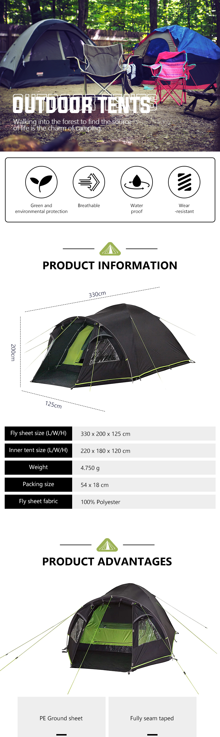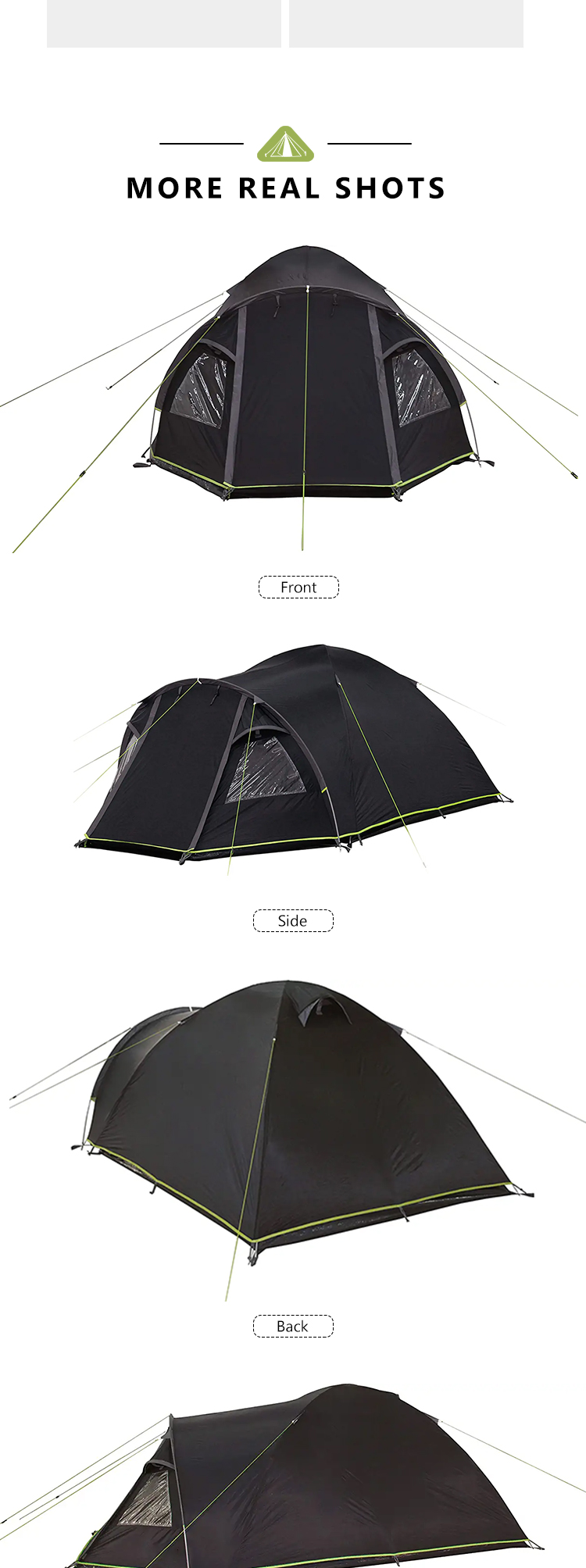 Tenda de montanha preta com cúpula impermeável de 3000 mm - parede dupla, sistema de ventilação