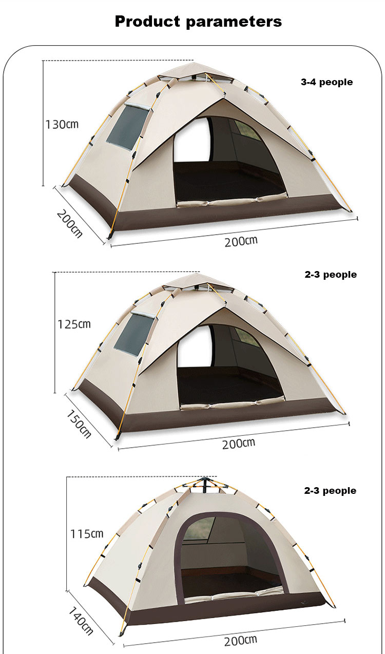 À prova d'água e respirável: É uma barraca de camada dupla, feita de poliéster impermeável 190T PU 3000, com tecido Oxford 150D na parte inferior para secagem rápida, além de costura dupla e costura selada na parte inferior para evitar vazamentos. Possui duas portas para entrada e saída.