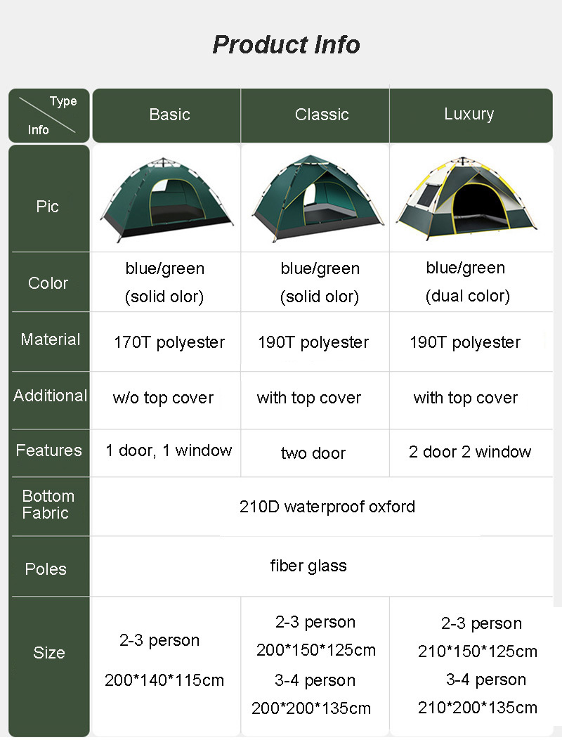 Fácil de configurar: O design hidráulico automático permite que você monte a barraca de acampamento em 1 minuto. Basta levantar a parte superior da barraca, abaixar o mecanismo superior e, em seguida, encaixar as juntas inferiores no lugar.